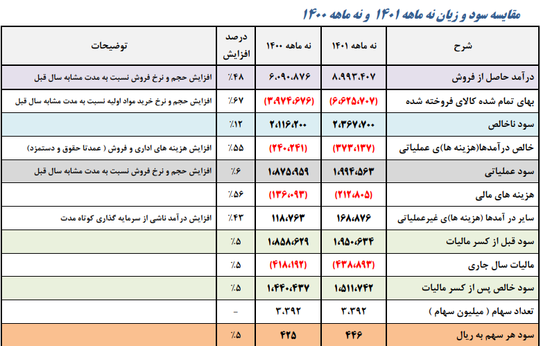 EPS نماد فنوال، در 9ماهه 446 ریال گزارش شده، که نسبت به مدت مشابه افت 79 درصدی داشته است، همچنین درآمد عملیاتی رشد 48 درصدی، هزینه های مالی رشد 56 درصد و سود عملیاتی نیز رشد 6 درصد را نسبت به مدت مشابه تجربه نموده است. عمده دلایل تغییرات به شرح زیر است: