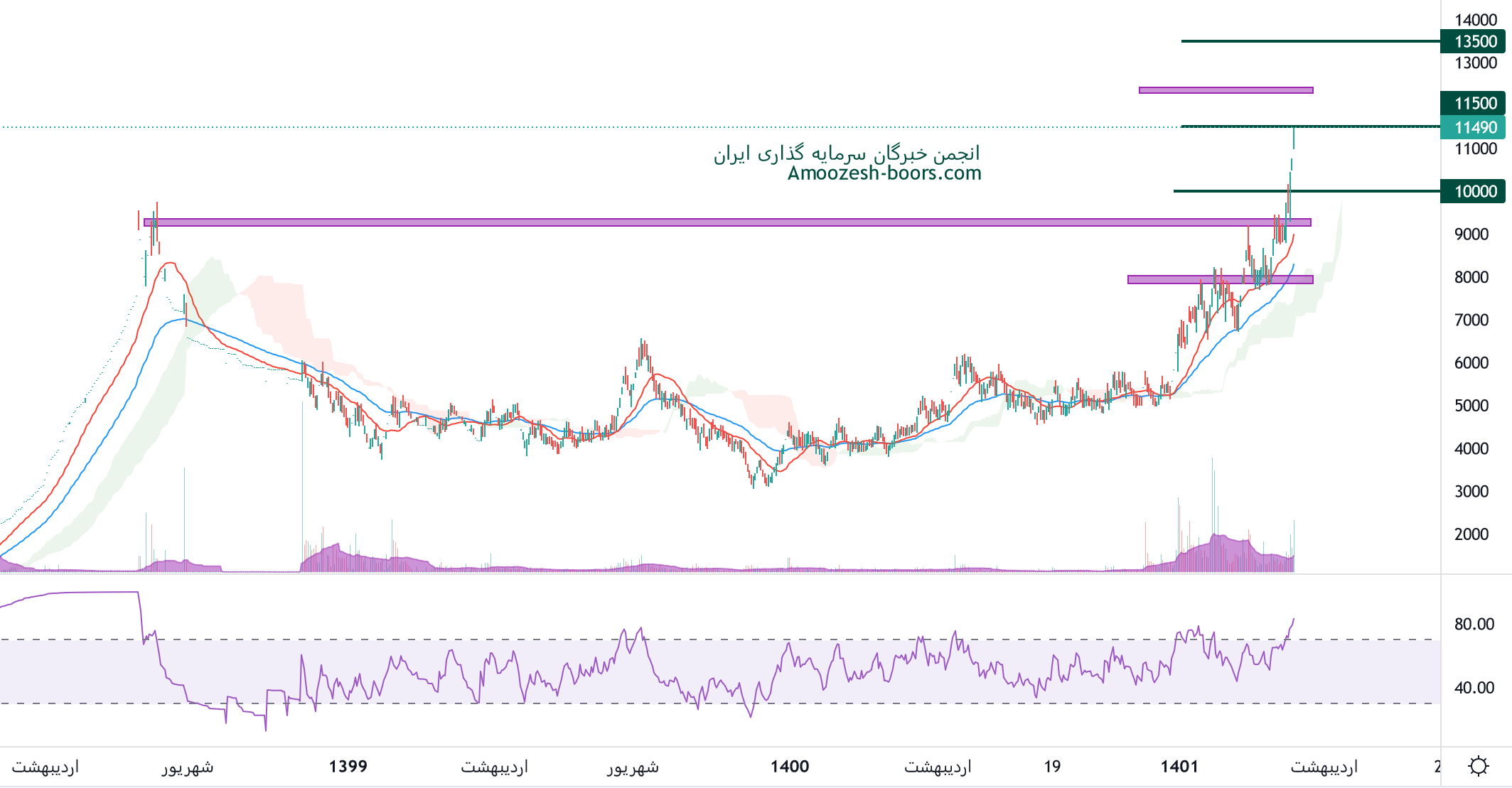 نماد فنوال که از قدرت صعودی بالایی برخوردار شده در حال حاضر به سطح مقاومتی 11500 ریال رسیده، در صورت عبور قیمت از این محدوده، مقاومت های 12500 و 13500 ریال بر سر راه سهم قرار دارد، همچنین حمایت سهم 10000 ریال ارزیابی میگردد.