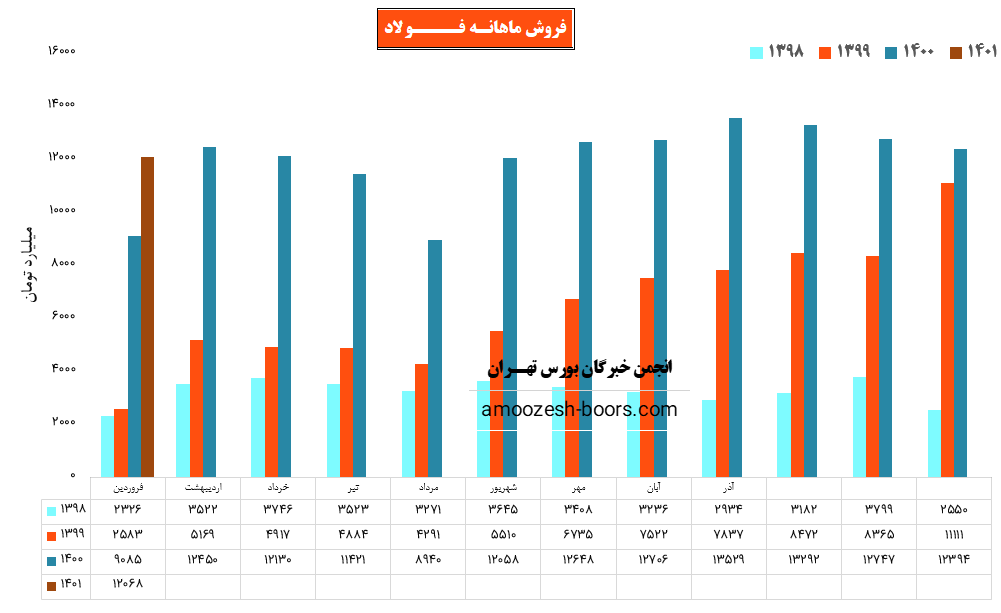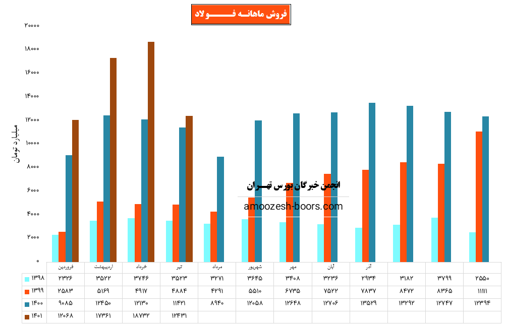 مقدار فروش کل محصولات فولاد در این ماه نسبت به فروردین 50% افزایش یافت و به 877 هزار تن رسید. نرخ فروش محصولات گرم شرکت در این ماه با رشد 1 درصدی به بیش از 20 میلیون تومان رسیده است.