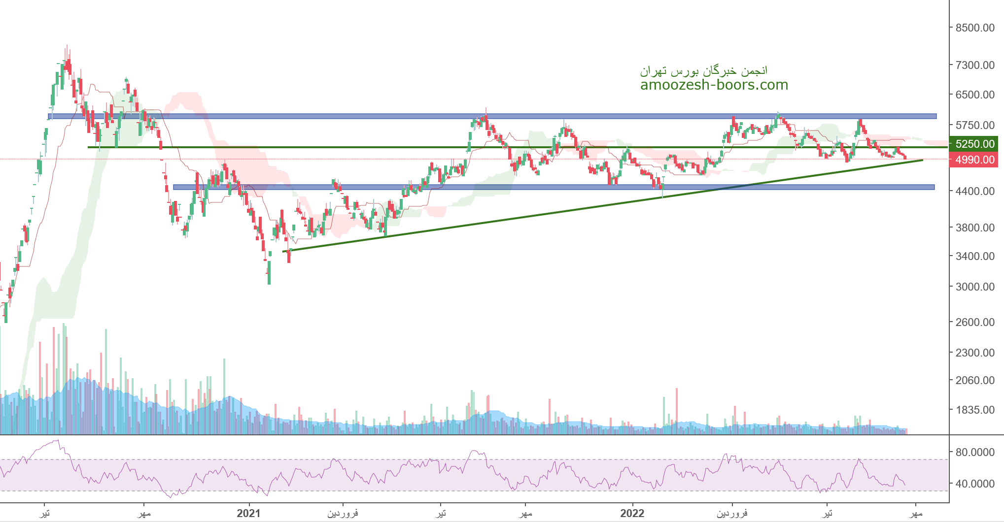 قیمت سهم فولاد در حال حاضر حمایت 4900 ریال را دارا میباشد، در صورت تثبیت قیمت، حرکت سهم تا 5250 ریال دور از ذهن نخواهد بود، همچنین در صورت از دست رفتن این حمایت، حمایت بعدی نماد فولاد 4400 ریال در نظر گرفته خواهد شد که در این صورت حد ضرر فعال میگردد.