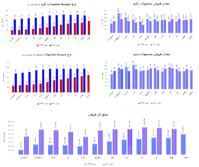 عملکرد شرکت فولاد مبارکه اصفهان در 9 ماهه 1400 با رشد همراه بوده است. فروش شرکت نسبت به مدت مشابه سال گذشته 123 درصد رشد داشته است و به 1،049 هزار میلیارد ریال رسیده است. شرکت در این دوره موفق به فروش بیش از 5,426 هزار تن انواع محصولات شده است.