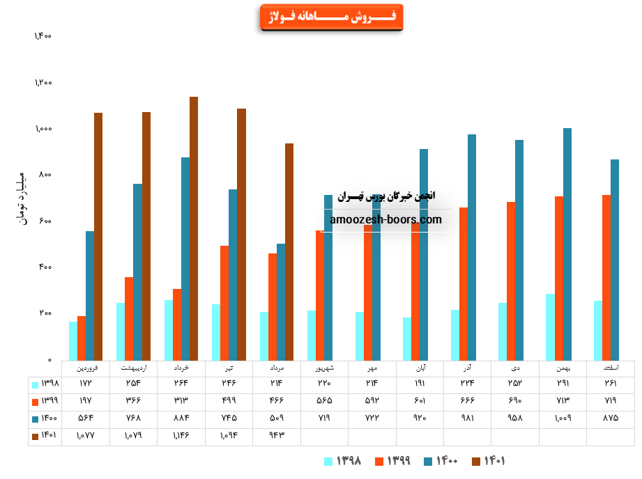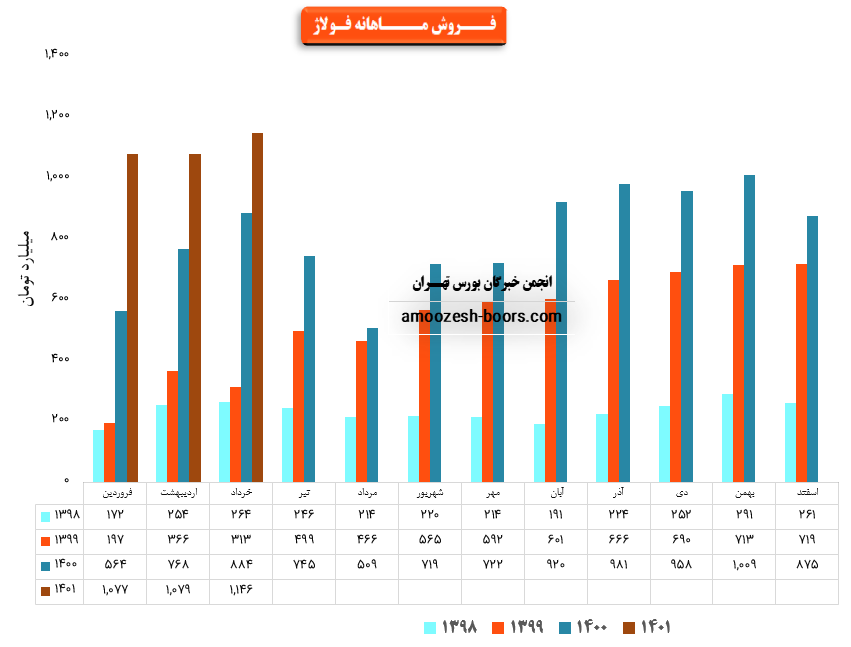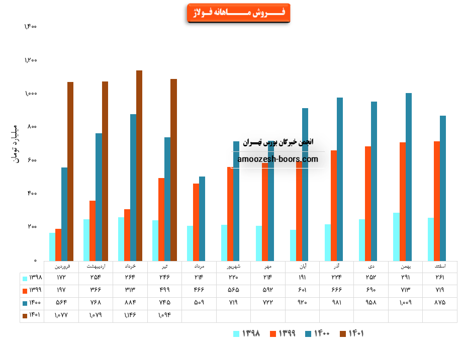 شرکت فولاد آلياژي ايران با نماد فولاژ در تیر ماه ۱۴۰1 حدود مبلغ 1094 میلیارد تومان درآمد داشته که این میزان در مقایسه با ماه گذشته 5% افت و همچنین در مقایسه با مدت مشابه سال گذشته 47% رشد درآمد پیدا کرده است.