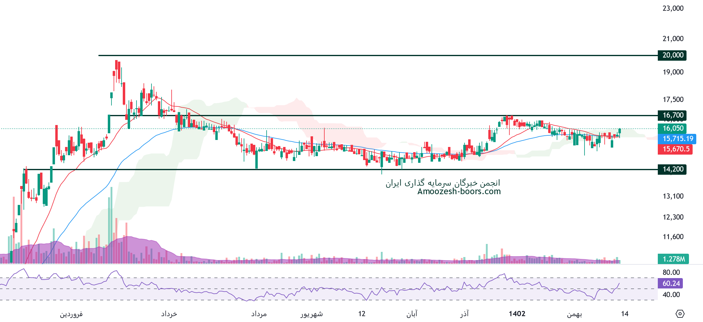 مقاومت نماد فولاژ از ناحیه پر تراکم 16700 ریال تشکیل شده است و با توجه به شرایط بازار شکست مقاومت و رسیدن به تارگت 20000 ریال محتمل میباشد.