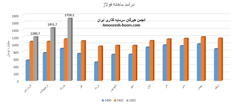 سهم فولاژ (شرکت فولاد آلياژي ايران) در تیر ماه سال 1402 حدود مبلغ 1698 میلیارد تومان درآمد داشته که این میزان در مقایسه با ماه گذشته 1% افت و همچنین در مقایسه با مدت مشابه سال گذشته 55% رشد درآمد پیدا کرده است.