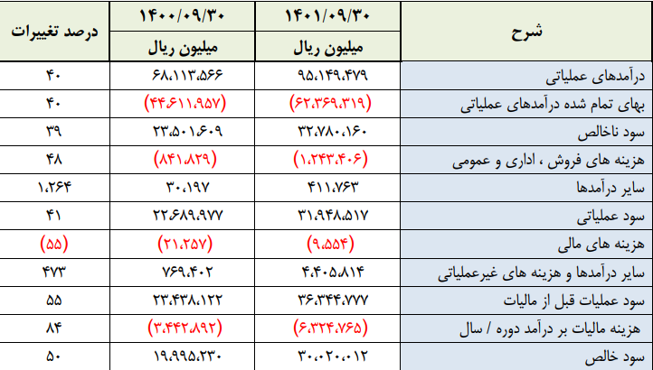 EPS شرکت فولاد آلیاژی ایران با نماد فولاژ درگزارش 9 ماهه 1251 ریال اعلام شده که نسبت به مدت مشابه رشد 50 درصدی را تجریه نموده است، همچنین درآمد عملیاتی با رشد 40%، سود عملیاتی افزایش 41%، هزینه های مالی کاهش 55% داشته است، حاشیه سود ناخالص سهم فولاژ مشابه مدت قبل 34% گزارش شده است، بهای تمام شده افزایش 56 درصدی داشته که ناشی از افزایش نرخ مواد اولیه آهن اسفنجی و قراضه میباشد.ساری تغییرات با اهمیت دوره به شرح زیر میباشد :