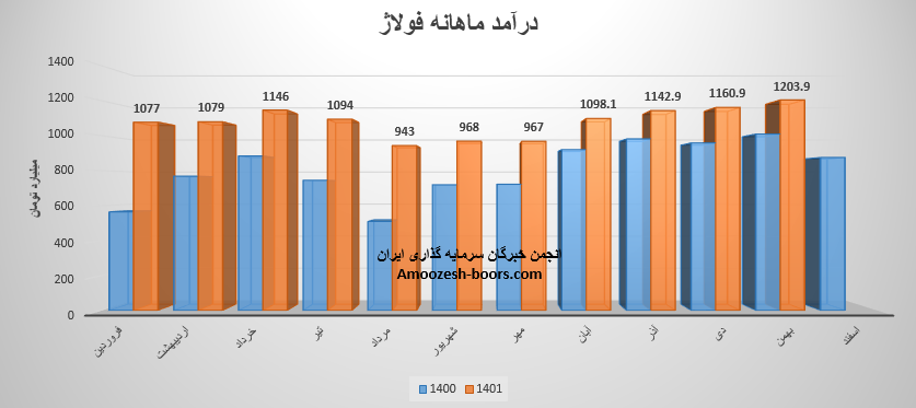 فولاژ با افزایش 4 درصدی درآمد نسبت به ماه قبل موفق به ثبت رکورد جدید در گزارشات ماهانه گردیده است، این رقم در مقایسه با متوسط ماهانه و همچنین مدت مشابه سال قبل به ترتیب افزایش 13 و 19 درصدی را داشته است، مجموع درآمد 11 ماهه فولاژ نسبت به مدت مشابه رشد 11 درصدی داشته است، بیشترین وزن سبد فروش نماد فولاژ، فولاد آلیاژی میباشد، که با وجود افزایش نرخ 5 درصدی نسبت به ماه قبل مقدار فروش آن 7% کاهش داشته است.