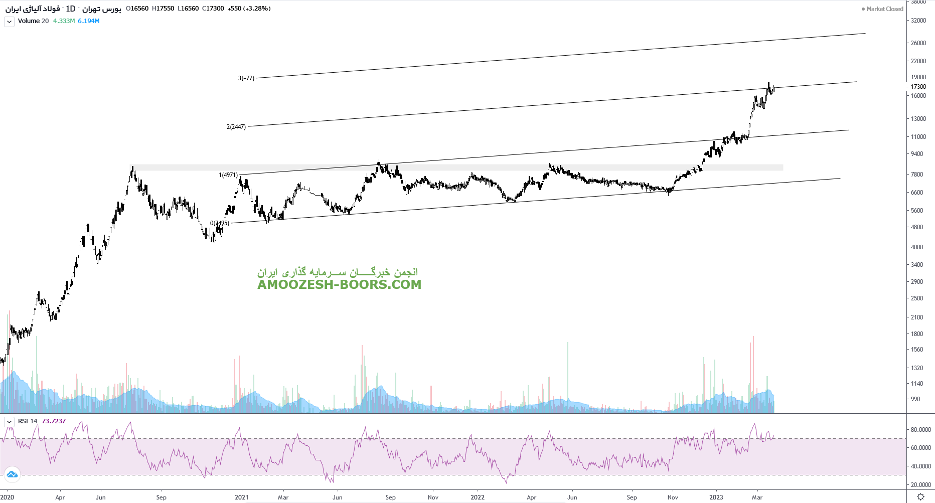 قیمت سهام فولاژ در مسیر رشد بدون توقف خود بر روی مقاومت ناحیه ۱۸۰۰ تومان قرار گرفته است که در صورت عبور از این ناحیه مقاومت بعدی سهم فولاژ ناحیه ۲۷۰۰ تومان در نظر گرفته خواهد شد. با توجه به رشد بیش از حد نماد، انتظار اصلا حداقل در قالب یک الگوی اصلاحی را از نماد فولاژ داریم.