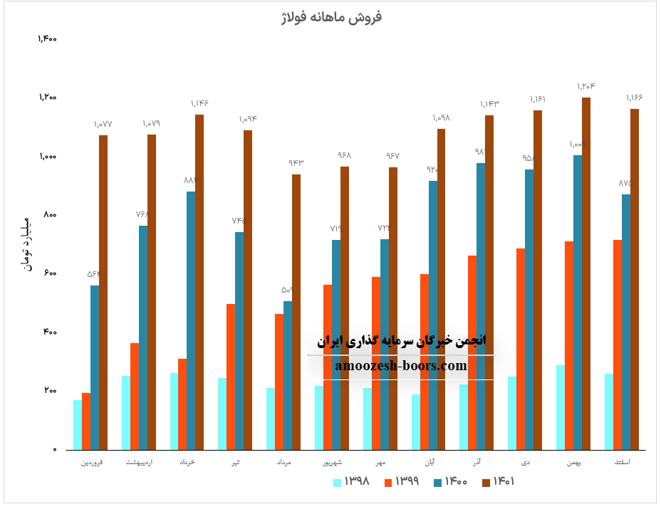 نماد فولاژ در اسفند ماه حدود بیش از 33400 تن از محصولات خود را به فروش رسانده که این میزان در مقایسه با حجم فروش ماه گذشته خود حدود 14% کاهش پیدا کرده است.