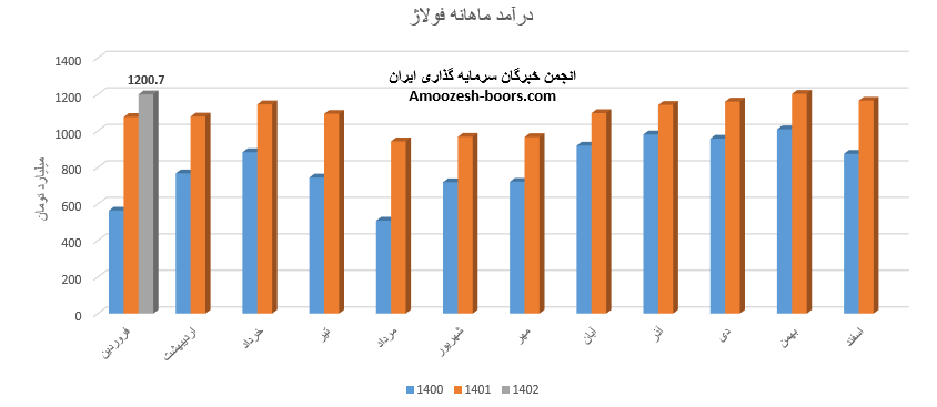 سهم فولاژ (شرکت فولاد آلياژي ايران) در اسفند ماه ۱۴۰1 حدود مبلغ 1166 میلیارد تومان درآمد داشته که این میزان در مقایسه با ماه گذشته 3% افت و همچنین در مقایسه با مدت مشابه سال گذشته 33% رشد درآمد پیدا کرده است.