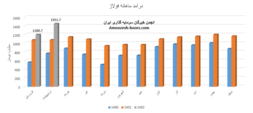 نماد فولاژ در گزارش عملکرد اردیبهشت ماه سال 1402 علاوه بر ثبت رکورد موفق به تحقق درآمد 1451.7 میلیارد تومانی گردیده که در مقایسه با ماه گذشته 21% و نسبت به مدت مشابه 35% بهبود عملکرد داشته است، محصولات آلیاژی به عنوان پر فروش ترین محصول فولاژ در مقایسه با ماه گذشته تغییرات زیر را تجربه نموده است: