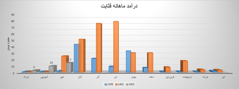 شرکت قند ثابت خراسان با نماد قثابت در مرداد ماه ۱۴۰1 حدود مبلغ 3 میلیارد تومان درآمد داشته که این میزان در مقایسه با ماه گذشته 25% افت و همچنین در مقایسه با مدت مشابه سال گذشته 200% رشد درآمد پیدا کرده است.