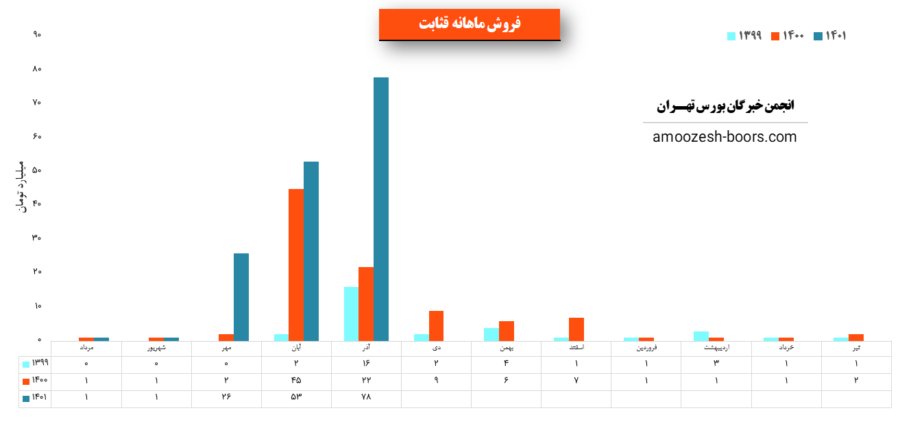 سهم قثابت در آذر 1400 مبلغ 78 میلیارد تومان درامد داشته که این میزان نسبت به ماه گذشته 47% و همچنین نسبت به مدت مشابه سال گذشته 255% رشد پیدا کرده است!