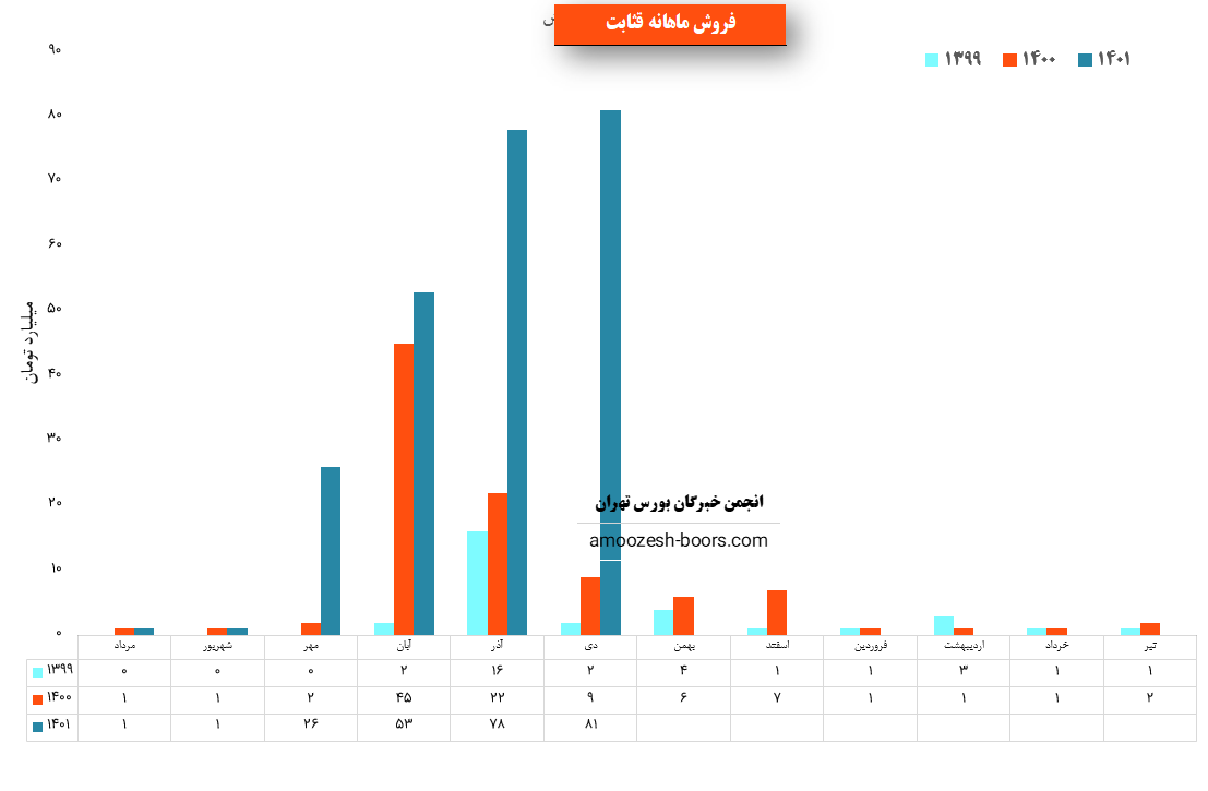 نماد قثابت در دی ماه 1400 مبلغ 81 میلیارد تومان درامد داشته که این میزان نسبت به ماه گذشته 4% و همچنین نسبت به مدت مشابه سال گذشته 800% رشد پیدا کرده است!