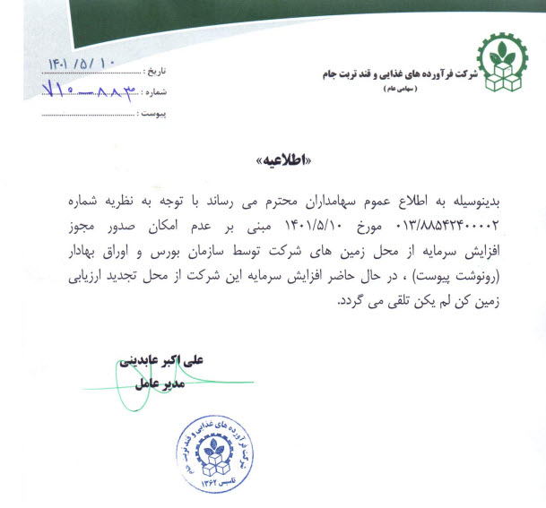 همچنین شرکت در خصوص افزایش سرمایه خود افشاییه زیر را انتشار نموده است: