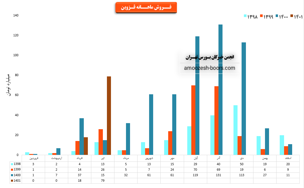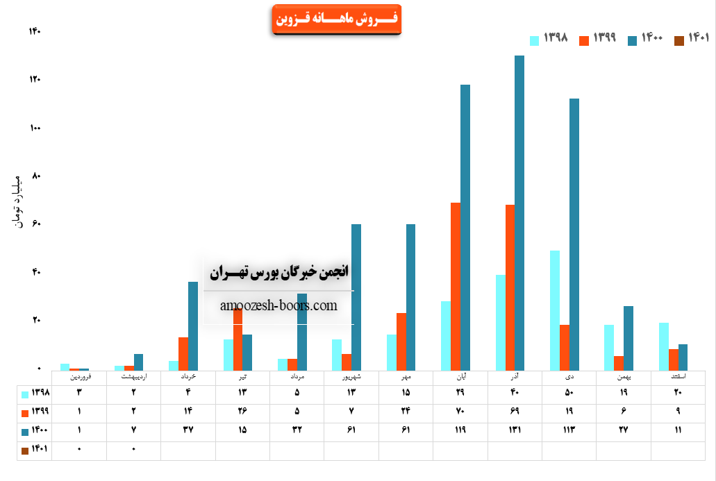 فروش نماد قزوین: 616 میلیارد تومان که نسبت به دوره مشابه گذشته 146% افزایش یافته است.