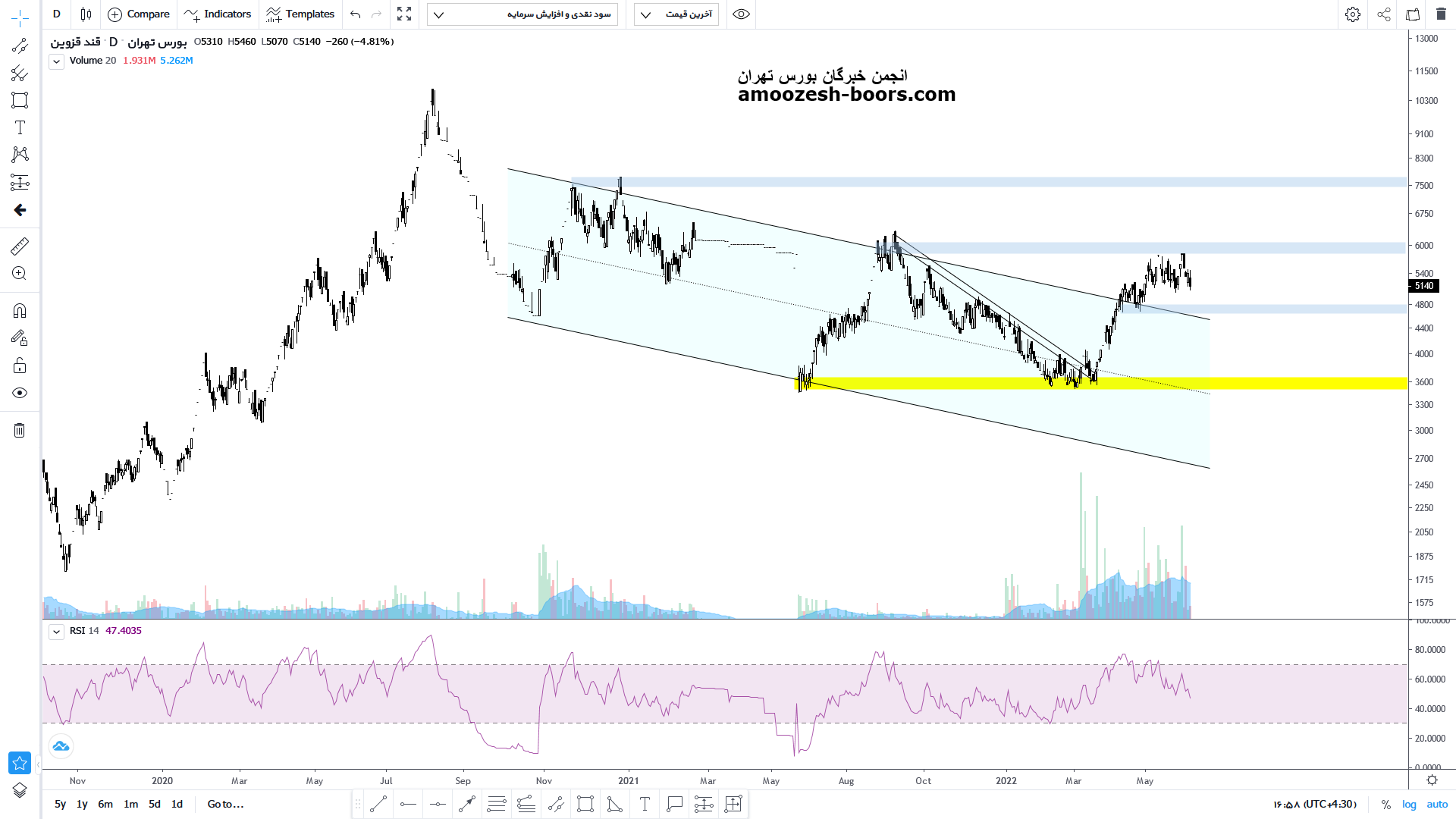درصورت عدم برگشت و حمایت از محدوده حمایتی 470 تومان قیمت میتواند اصلاح خود را تا محدوده 360 تومان نیز ادامه دهد.