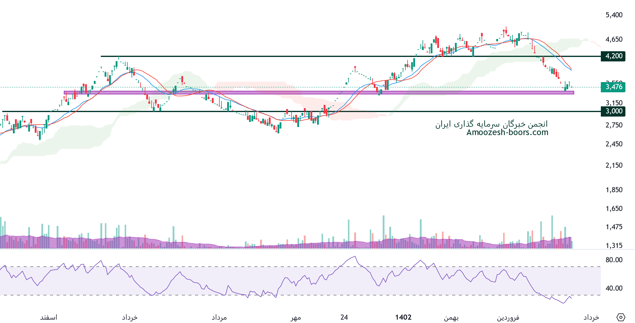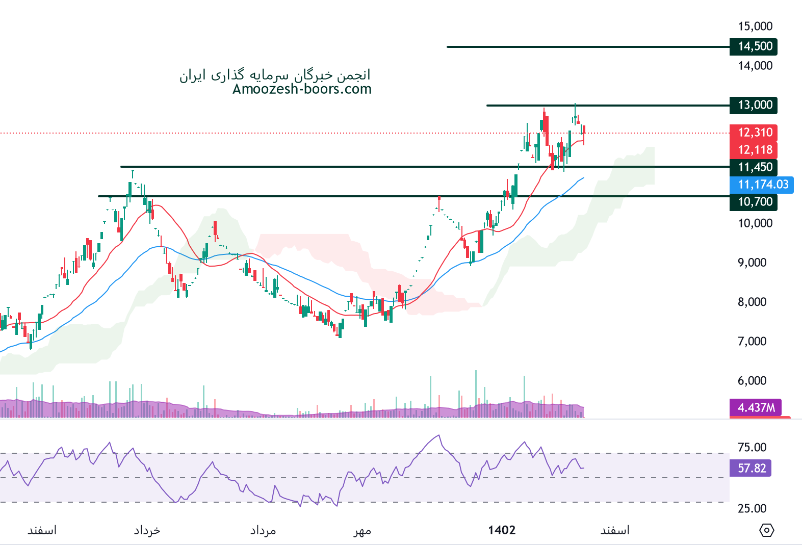 اما اگر افزایش تقاضا در بازار منجر به شکست مقاومت 3300 ریال شود، انتظار میرود مقاومت بعدی سهم قشرین در محدوده 3750 ریال باشد.