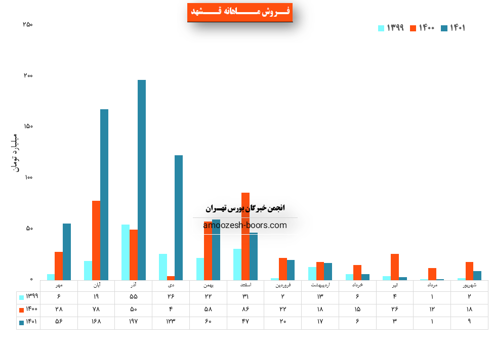 فروش نماد قشهد: 702 میلیارد تومان که نسبت به دوره مشابه گذشته 95% افزایش یافته است.