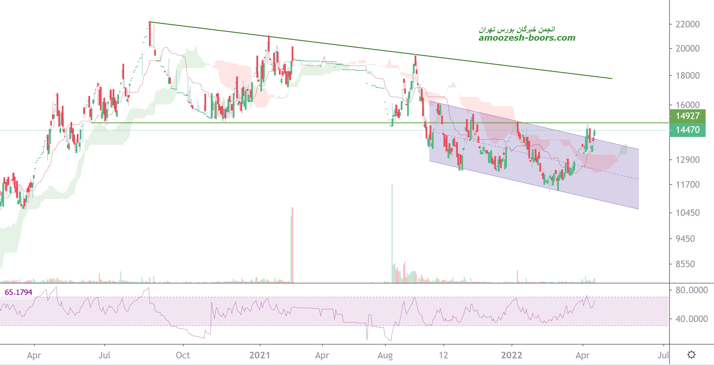 قیمت نماد قشهد در حال حاضر در حال تلاش برای شکستن سقف کانال نزولی کوتاه مدتی خود میباشد و در صورت ادامه دار شدن تقاضا و تثبیت بالای این کانال حرکت قیمت تا 17000 ریال محتمل خواهد بود و در صورتی که قیمت وارد فاز اصلاحی شود حمایت اول سهم میدلاین کانال در نظر گرفته خواهد شد که در این صورت حد ضرر دوستان کوتاه مدتی فعال خواهد شد.