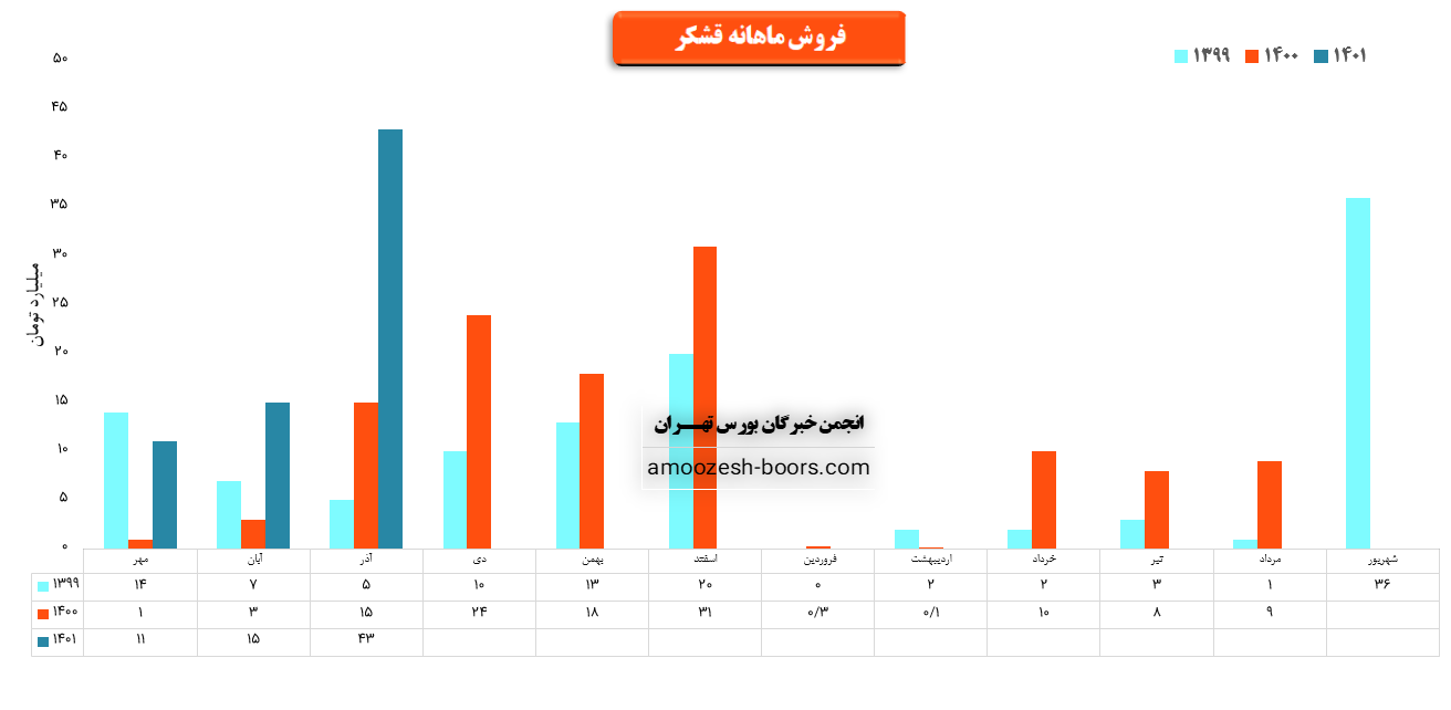 نماد قشکر در آذر 1400 مبلغ 43 میلیارد تومان درامد داشته که این میزان نسبت به ماه گذشته و همچنین نسبت به مدت مشابه سال گذشته 187% رشد پیدا کرده است!