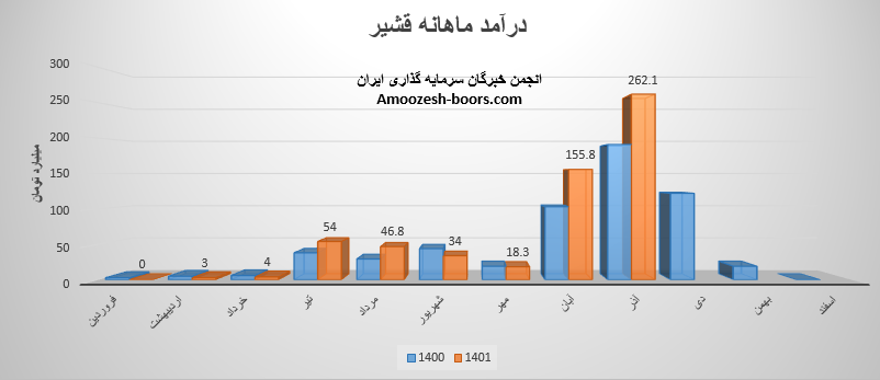 شرکت قند شیروان،قوچان و بجنورد (قشیر) در گزارش فعالیت ماهانه آذر 1401 به درآمد 262.1 میلیارد تومان رسید . تمام این رقم از طریق فروش داخلی تامین گردیده است . درآمد آذر ماه سهم قشیر تغییرات زیر را تجربه نموده است .