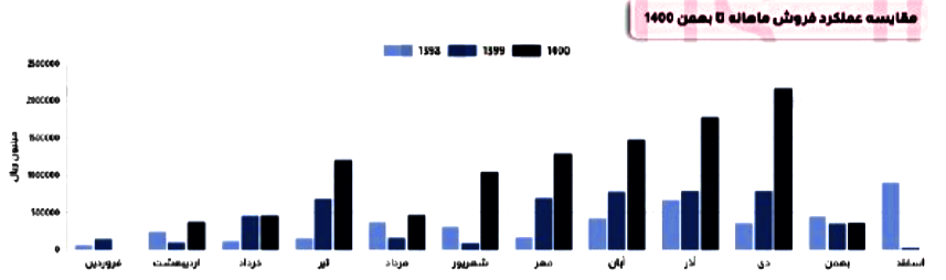 فروش نماد قصفها: 800 میلیارد تومان که نسبت به دوره مشابه گذشته 105% افزایش یافته است