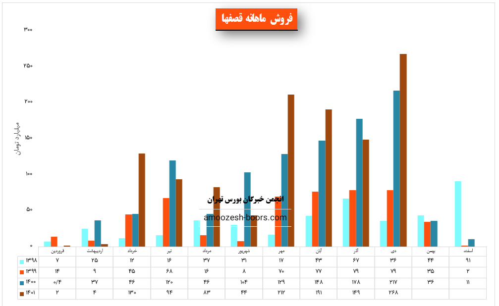فروش نماد قصفها: 909 میلیارد تومان که نسبت به دوره مشابه گذشته 14% افزایش یافته است.