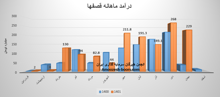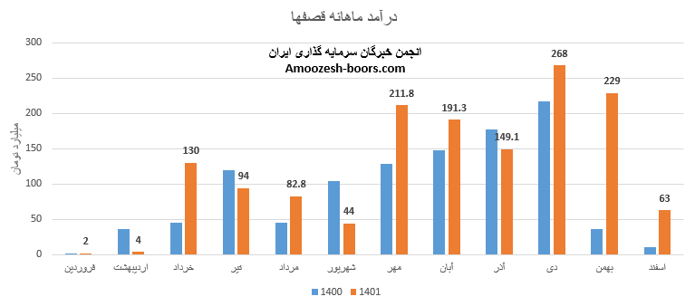 تمام این رقم از طریق فروش داخلی تامین گردیده است . درآمد آذر ماه سهم قصفها تغییرات زیر را تجربه نموده است .