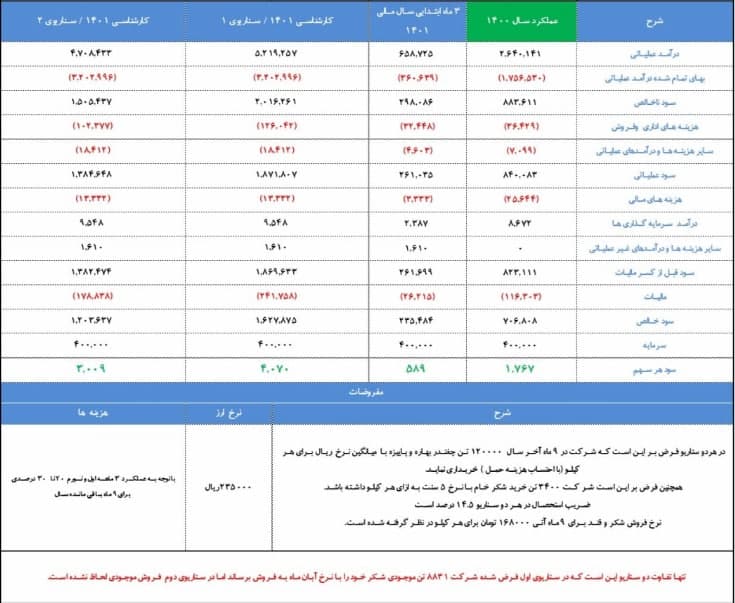 | مهم ترین هزینه های شرکت | هزینههای عمومی و اداری، کاهش تولید محصول زراعی چغندر قند |