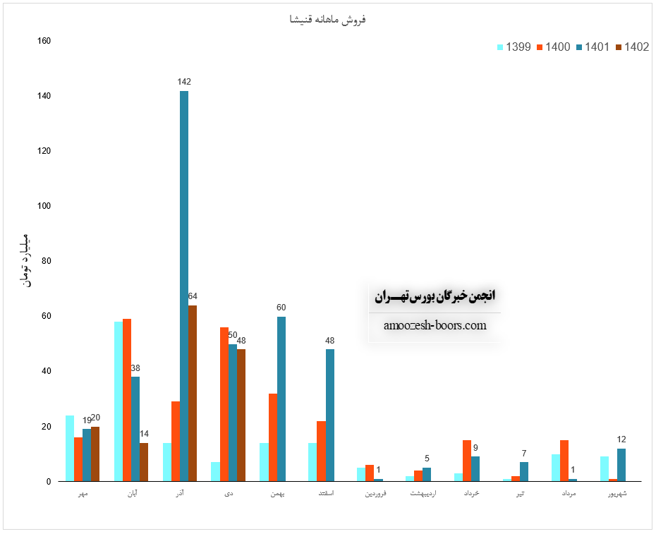 فروش سهم قنیشا: 99 میلیارد تومان که نسبت به دوره مشابه گذشته 50% کــــــاهش یافته است.