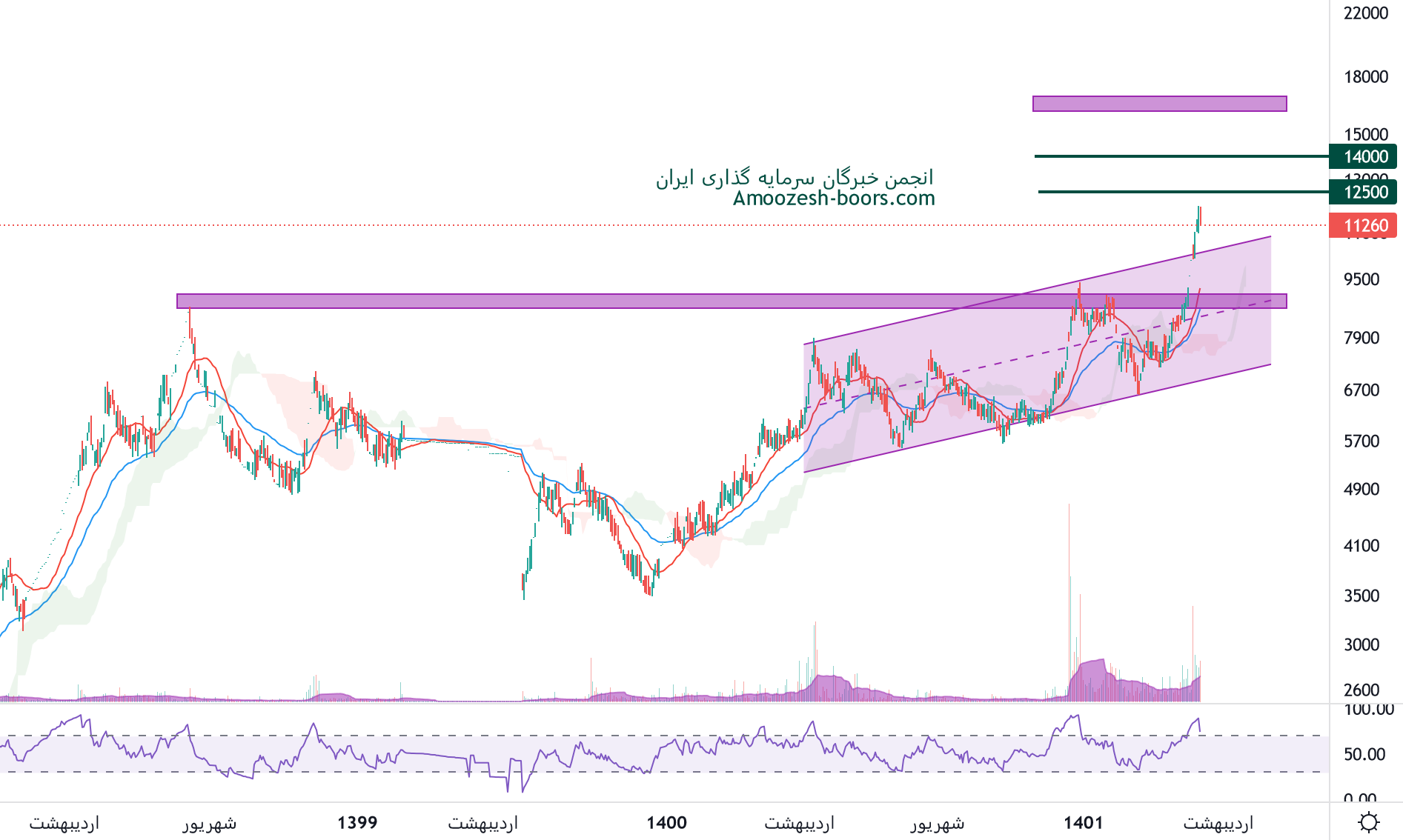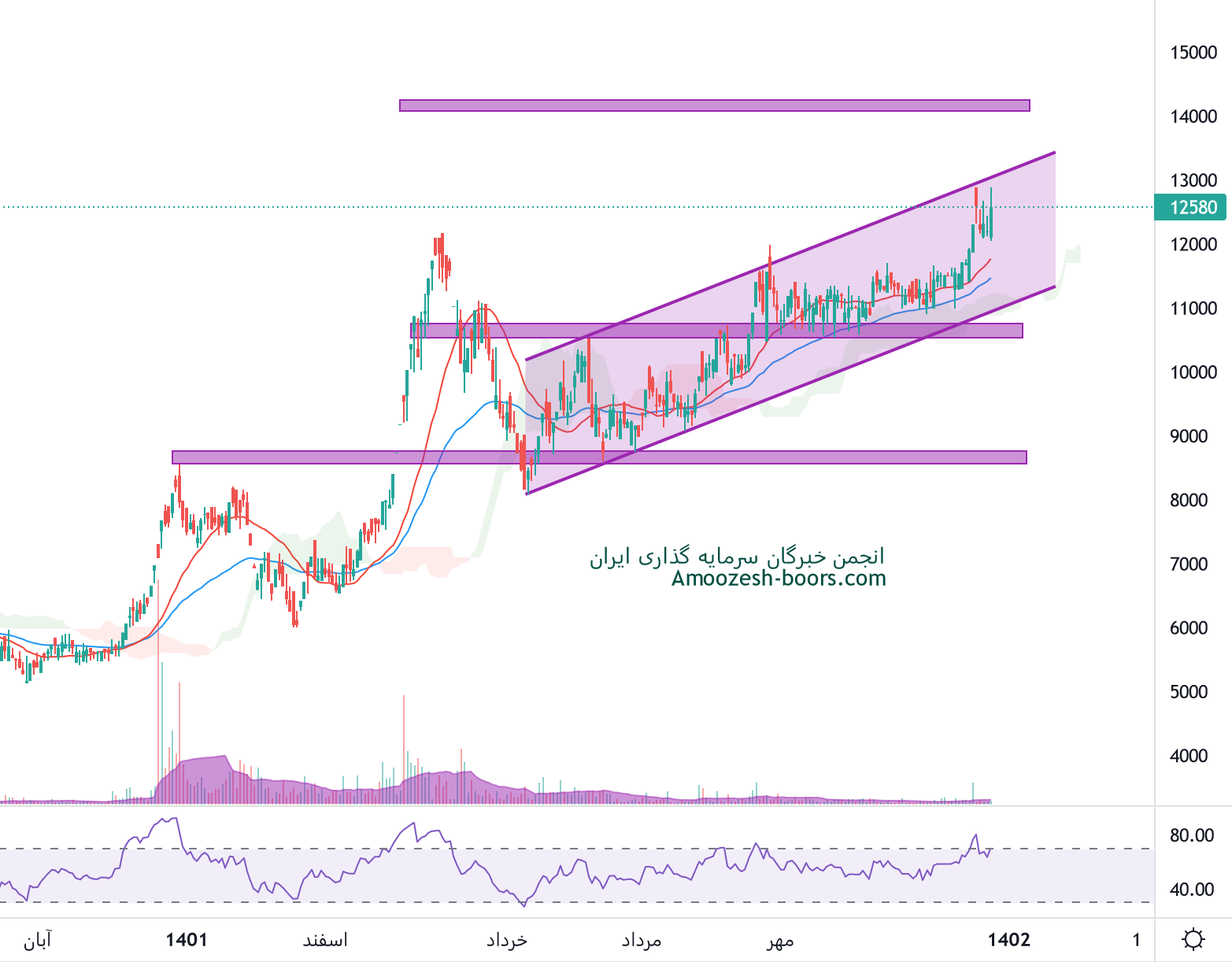 12500 و 14000 ریال دو مقاومت پیش روی نماد قهکمت محسوب میگردند، در صورت میل به اصلاح، حمایت های سهم قهکمت محدوده های 11000 و 9000 ریال در نظر گرفته خواهند شد.