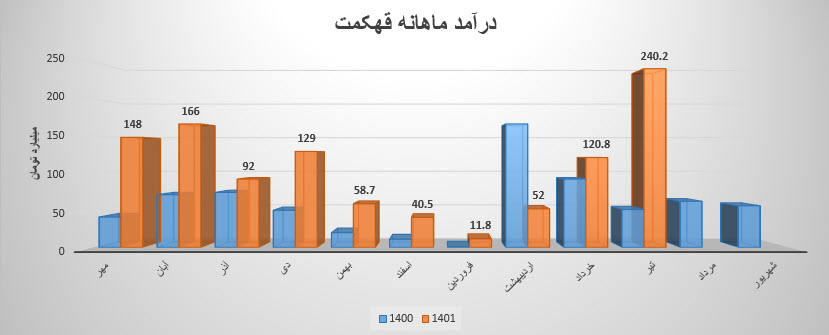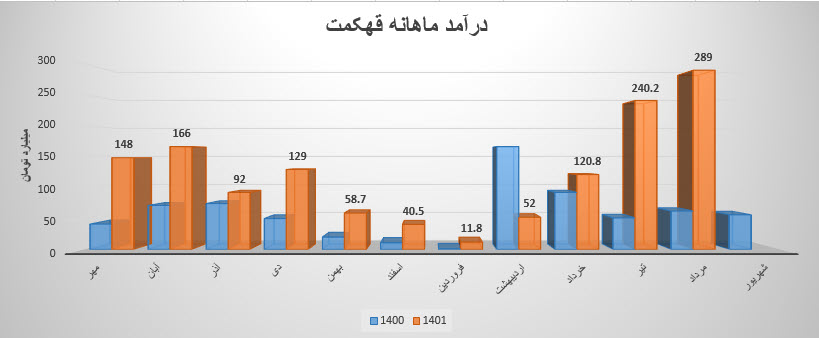 نماد قهکمت نسبت به دوره 1 ماهه مشابه سال قبل 368% افزایش درآمد داشته است.