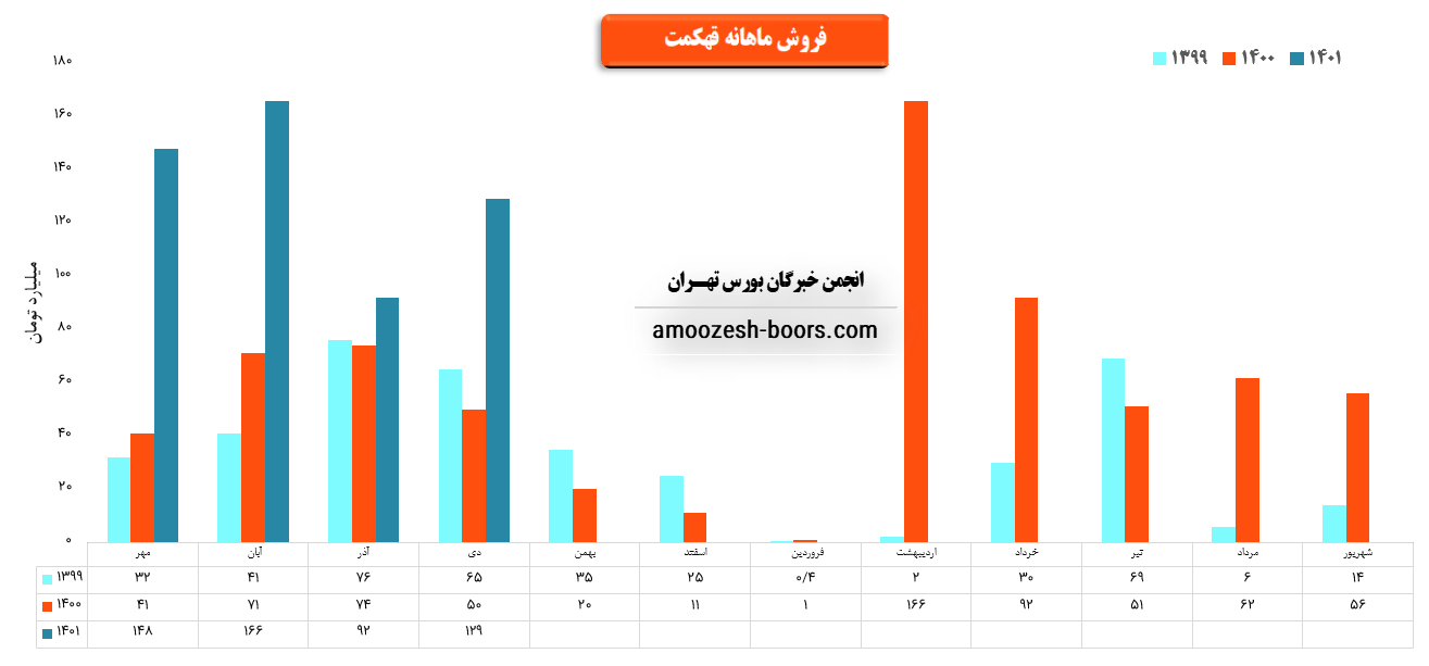 درآمد سهم قهکمت در این دوره نسبت به ماه قبل 55% کاهش و نسبت به میانگین ماه های قبل 31% کاهش داشته است. شرکت نسبت به دوره 1 مشابه سال قبل 197% افزایش درآمد داشته است.قهکمت این ماه شکر را با نرخ 12،697 تومان به ازای هر کیلو فروخته است. متوسط نرخ شکر درچهار ماه قبل حدود 12،377 تومان بوده است.هم چنین نرخ شکر از خرداد تا شهریور 12،495 تومان بوده است. نرخ شکر تا اردیبهشت برای ماه های که فروش داشته است به طور متوسط حدود 6،800 تومان بوده است و متوسط نرخ سال 1399 نیز حدود 4 هزار تومان بوده است.