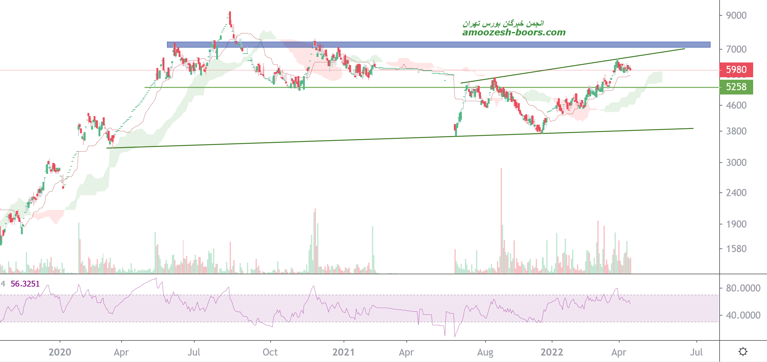 قیمت پس از به وجود آوردن الگوی بازگشتی دو کف در حال حرکت به سمت هدف خود می باشد در همین راستا نیز مقاومت محدوده سقف تاریخی خود یعنی محدوده ۹۰۰الی 1000 تومان را به عنوان مقاومت مهم پیش روی خود دارد که در صورت بروز واکنش منفی به این محدوده مقاومتی می تواند حمایت محدوده ۷۵۰ تومان را که به تازگی از مقاومت تبدیل به حمایت شده تست کند اما در صورت شکست این مقاومت مهم انجام پولبک را پس از شکست و تثبیت این مقاومت انتظار داریم.
