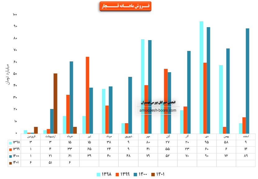 نماد قچار در خرداد ماه حدود بیش از 500 تن از محصولات خود را به فروش رساند که این میزان در مقایسه با فروش ماه گذشته حدود 84% کاهش پیدا کرده که با توجه به فصلی بودن فعالیت شرکت امری طبیعی میباشد.
