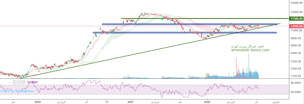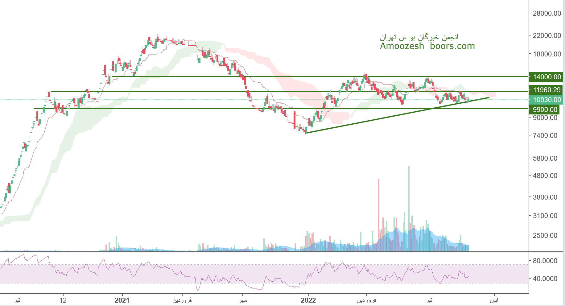در حال حاضر سهم مقاومت 14000 ریال را پیش رو دارد،در صورتی که قیمت موفق به عبور از این مقاومت شود مقاومت بعدی 17500 ریال درنظر گرفته خواهد شد،همچنین در صورت اصلاح،حمایت های سهم به ترتیب 12000 ریال و 10000 ریال خواهد بود که در صورت از دست رفتن حمایت اول حد ضرر فعال میگردد.