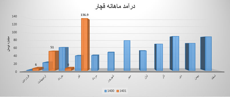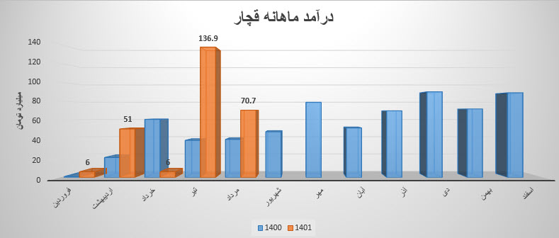 درآمد سهم قچار در این دوره نسبت به ماه قبل 2202% افزایش و نسبت به میانگین ماه های قبل 553% افزایش داشته است.