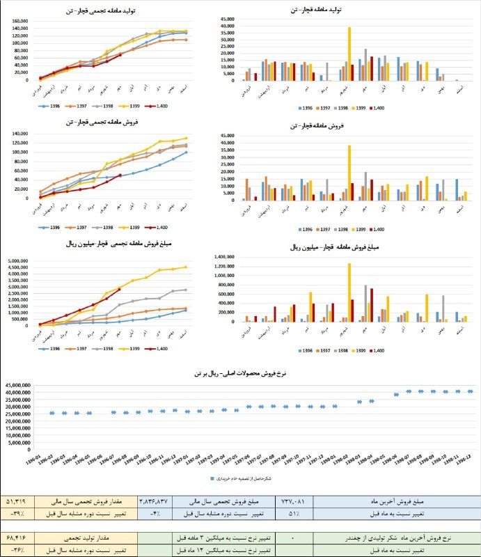 همچنین در بررسی حجم فروش شکر که پر فروش ترین محصول قچار محسوب میشود، رشد 14 درصدی فروش را درآذرماه نسبت به آبان ماه شاهد بودیم، قچار توانست در آذر 4315 تن از شکر تولیدی از چغندر را بفروش برساند
