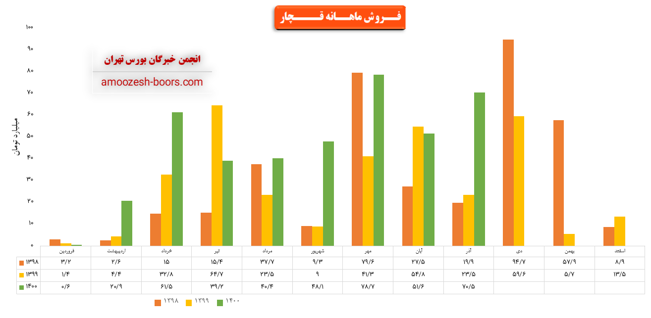 نماد قچار در آذر 1400 مبلغ 70 میلیارد تومان درامد داشته که این میزان نسبت به ماه گذشته 37% و همچنین نسبت به مدت مشابه سال گذشته 200% رشد درامد پیدا کرده است!