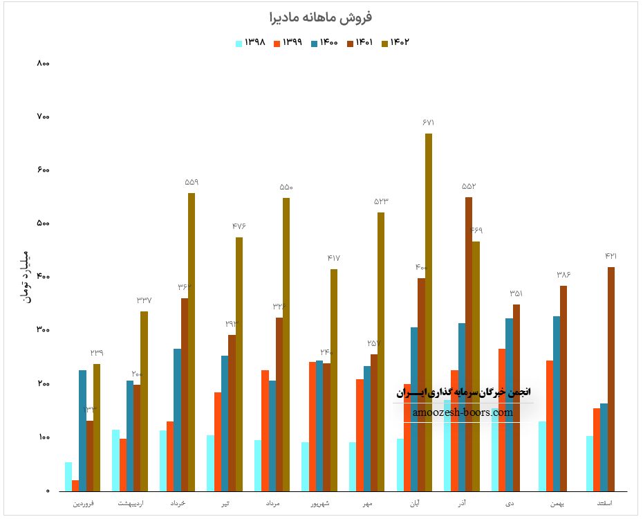 فروش ماهانه مادیرا در مقایسه با متوسط ماهانه 51% و نسبت به آبان ماه سال گذشته 68% رشد را نشان میدهد.