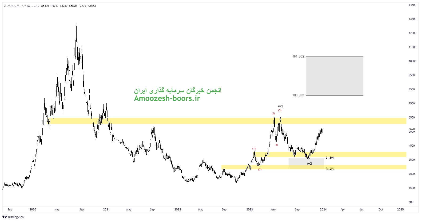 قیمت سهم مادیرا در مسیر صعودی مقاومت مهم ناحیه ۶۲۰ تومان را پیش روی خود دارد که در صورت حفظ تقاضای به وجود آمده در کلیت بازار و عبور از این ناحیه، مقاومتهای بعدی سهم مادیرا به ترتیب ناحیه ۸۰۰ و ۱۱۰۰ تومان در میان مدت در نظر گرفته خواهد شد.