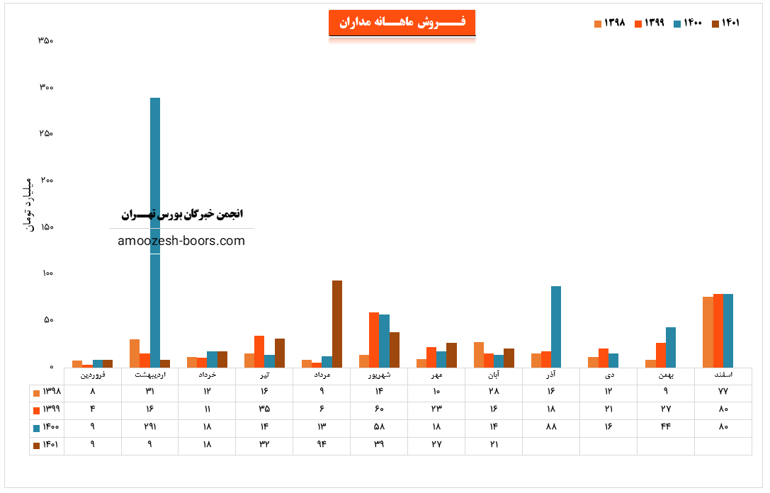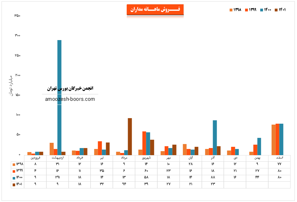 شرکت داده پردازی ایران با نماد مداران در عملکرد دهمین ماه از سال مالی به درآمد 64.5 میلیارد تومانی رسیده است . درآمد دی ماه مداران رشد خوب 180 درصد نسبت به ماه قبل و 113 درصدی نسبت به متوسط ماهانه و 303 درصدی نسبت به مدت مشابه سال قبل را داشته است .تجهيزات سخت افزاري پر فروش ترین محصول مداران با سهم 48 درصدی از فروش ماهانه گزارش شده است. .