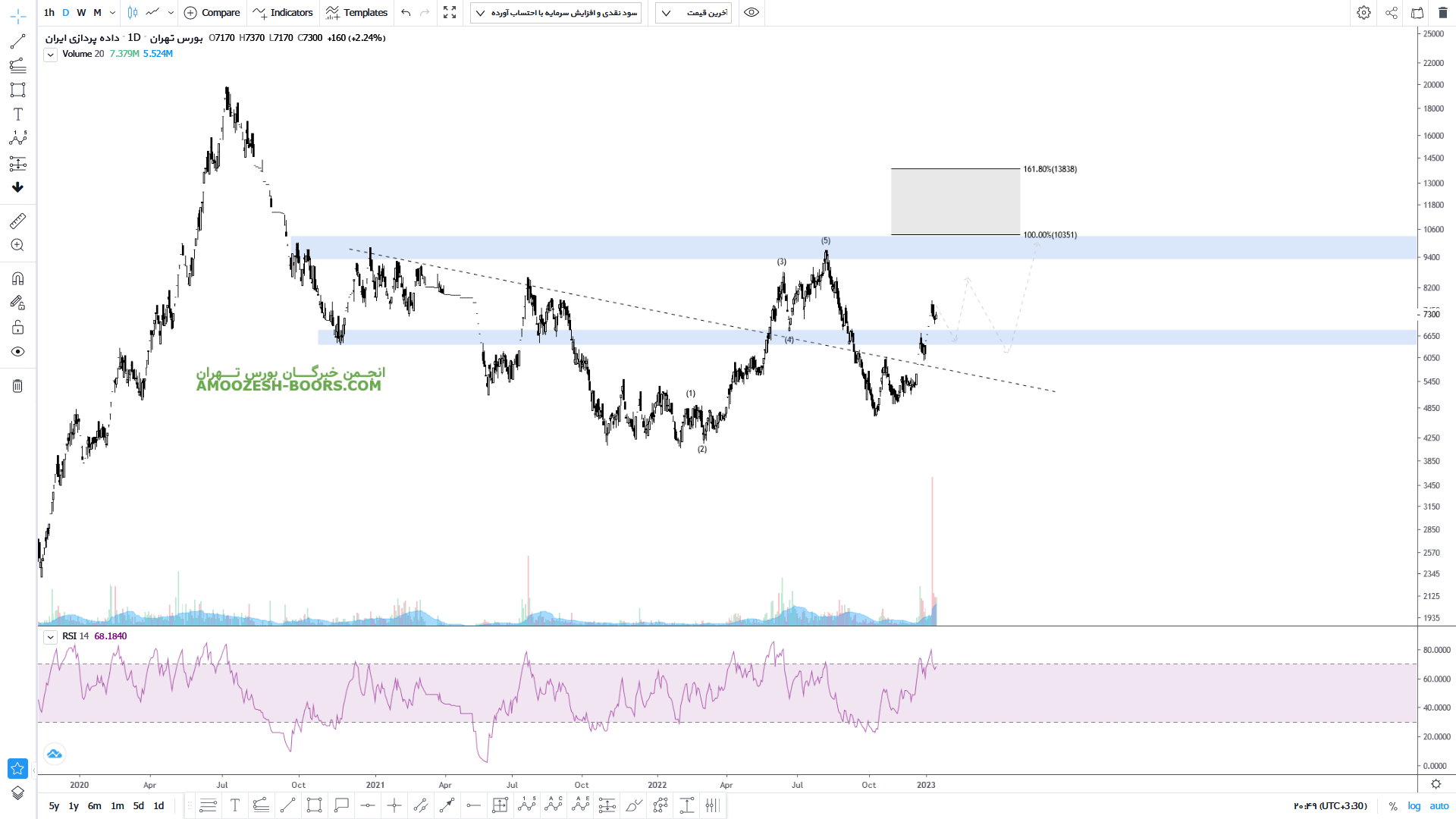 قیمت سهم مداران پس از عبور از ناحیه مقاومتی مهم ۶۵۰ تومان میتواند با تایید پولبک رشد خود را تا ناحیه مقاومتی 1000 تومان نیز ادامه دهد. همچنین در صورت اصلاح اولین حمایت سهم مداران ناحیه ۳۵۰ تومان در نظر گرفته خواهد شد.