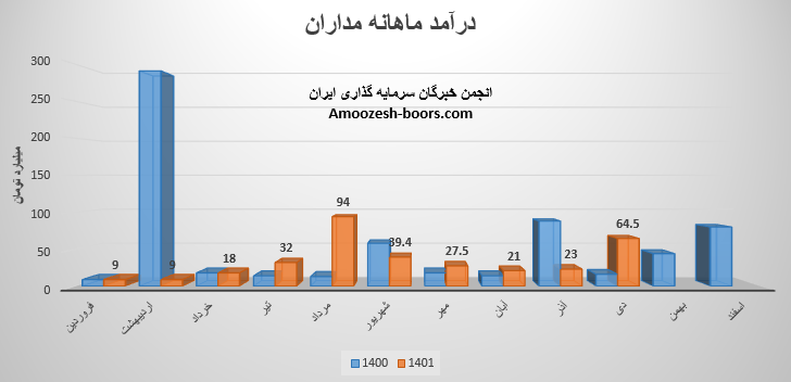 سهم مداران (شرکت داده پردازی ایران) در آبان ماه ۱۴۰1 حدود مبلغ 21 میلیارد تومان درآمد داشته که این میزان در مقایسه با ماه گذشته 22% کاهش و همچنین در مقایسه با مدت مشابه سال گذشته 50% رشد درآمد پیدا کرده است.