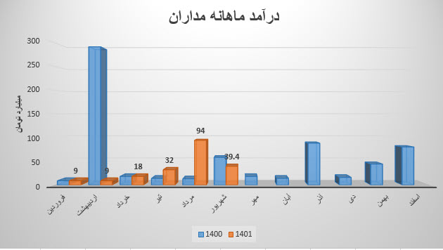 مداران طی عملکرد خرداد ماه خود معادل 181,661 درآمد داشته است که نسبت به ماه قبل 107% افزایش و نسبت به میانگین ماه های قبل 106% افزایش داشته است.