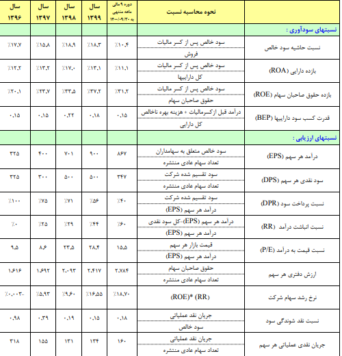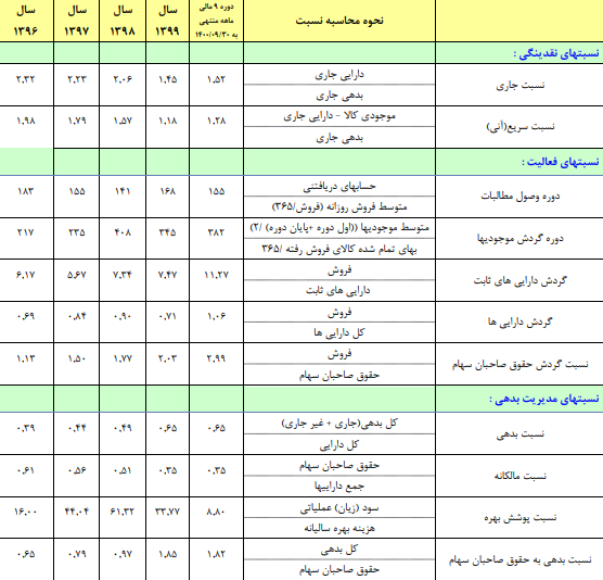سایر نسبت های مالی در دوره نه ماهه شرکت به شرح زیر میباشد :
