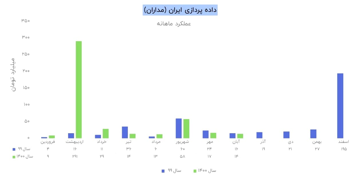 عمده درآمد شناسایی شده مربوط به خدمات داده پردازی بوده است که نسبت به ماه گذشته 33 درصد رشد داشته است.