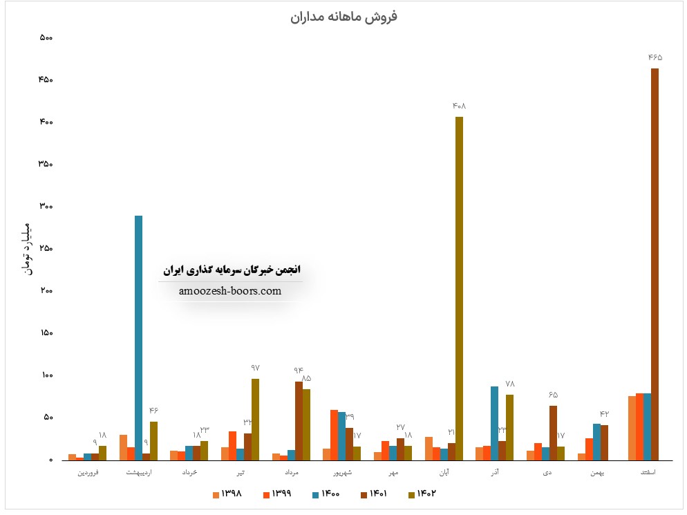 مداران در اسفند ماه از طریق داخلی به فروش 152.5 میلیارد تومانی دست یافت.