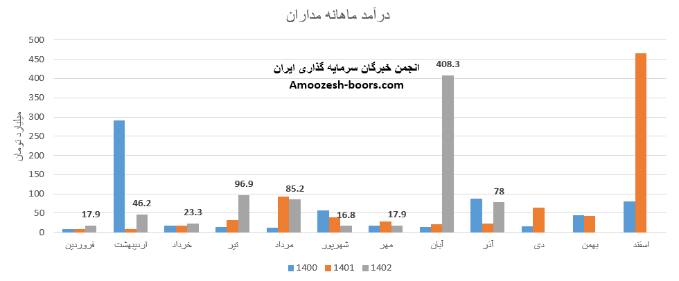 فروش آذر ماه سال 1402 سهم مداران 78 میلیارد تومان گزارش شده است، تغییرات درآمدی مداران به شرح زیر میباشد: