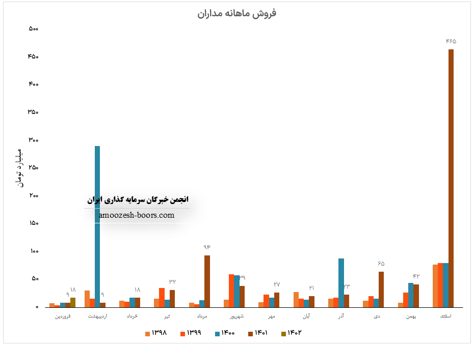شرکت داده پردازی ایران ( نماد مداران ) با ثبت گزارش خیره کننده ای موفق به افزایش 482 درصدی درآمد نسبت به مدت مشابه سال قبل گردیده است، درآمد اسفند ماه سال 1401 سهم مداران برابر با 465 میلیاردو 200 میلیون تومان گزارش شده است به طوری که این رقم افزایش 1010 درصدی نسبت به ماه گذشته و افزایش 1249 درصدی نسبت متوسط ماهانه داشته است، علت اصلی افزایش فروش نماد مداران مربوط به تجهیزات سخت افزاری میباشد، که در ماه قبلی هیچ فروشی از این محل انجام نشده، شناسایی سود 380 میلیارد تومانی بابت قرارداد فروش 2 دستگاه مین فریم به یکی از بانک های کشور میباشد که احتمال تکرار مجدد این میزان از درآمد برای نماد مداران غیر محتمل میباشد، مجموع عملکرد 12 ماهه سهم مداران 27% رشد نسبت به کل درآمد سال گذشته را نشان میدهد.
